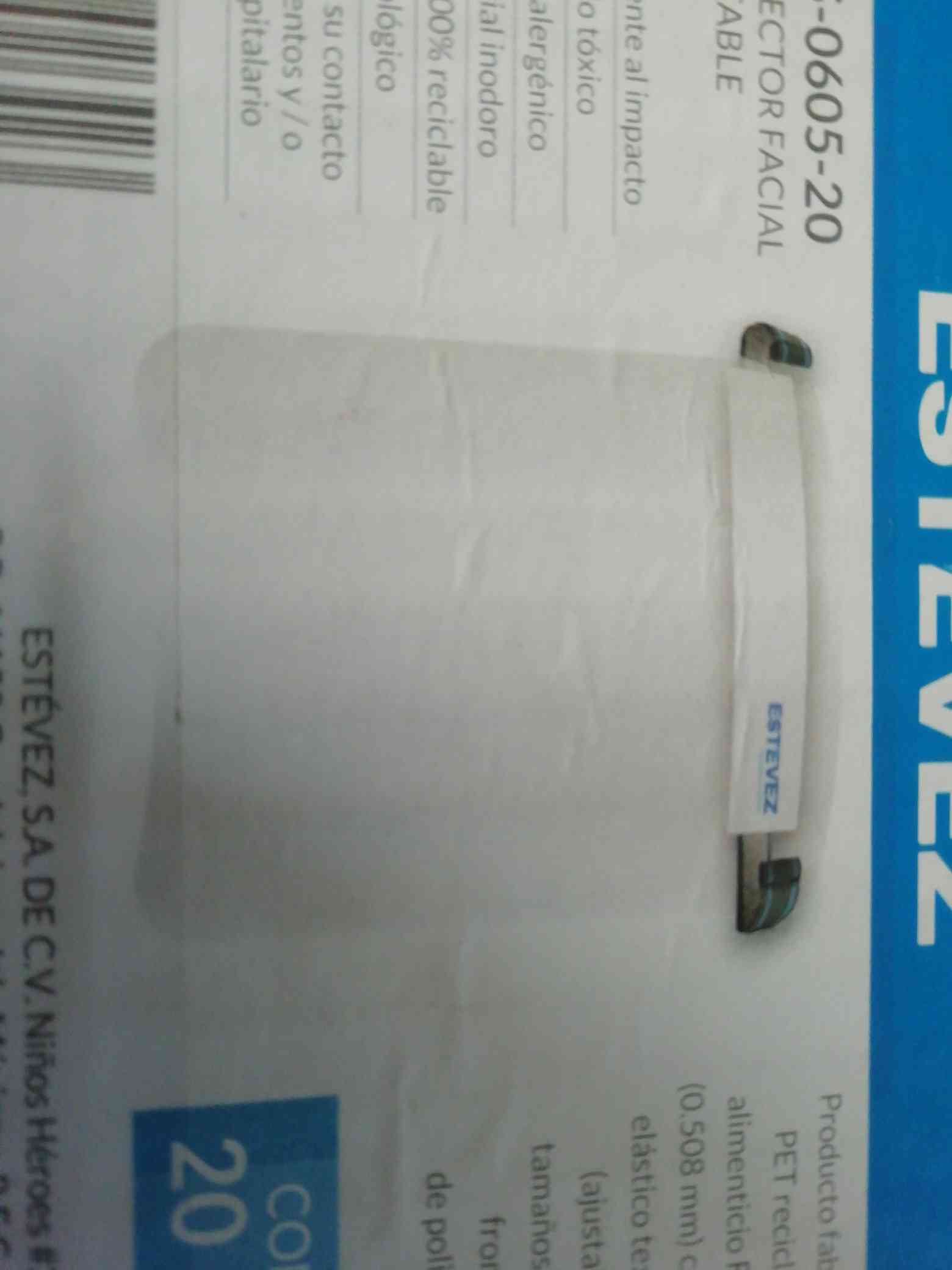 Careta de protección facial fabricada en PET cal 20.5 mm.